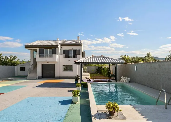 L’hotel si trova a Lozovac a 5 km dal centro città. Anche il parco nazionale della Cherca si trova a circa 15 minuti in macchina dall'hotel Villa Eros Lozovac. Sentiti in totale armonia con la natura visitando Skradinski Buk waterfall, a una distanza di 4,1 km dall'alloggio. Per chi viaggia da lontano, l'aeroporto di Spalato si trova a 59 minuti di auto.